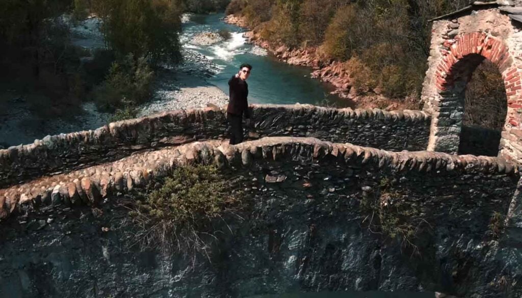 Filmed in Turin, the video features Aloia standing on a striking medieval bridge: the Devil’s Bridge in Lanzo Torinese, built in 1378 and steeped in legend, said to have been constructed by the devil himself.