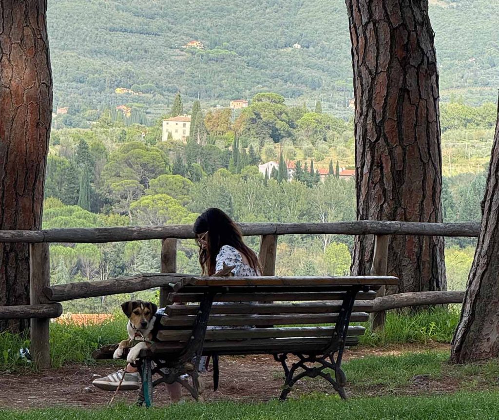 I’m lingering in Arezzo for another week, sneaking in day trips to Cortona, Greve in Chianti, and even tiny Rigutino. Back in Arezzo, I’m savoring the city’s gentle rhythm—teaching , writing, reading, and listening to audiobooks beneath the shady trees of the park behind the Duomo, where the view of the Tuscan countryside will simply take your breath away.